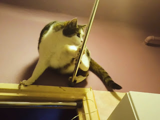 Remontują balkony w bloku, więc roleta opuszczona, a drapak bez słońca.